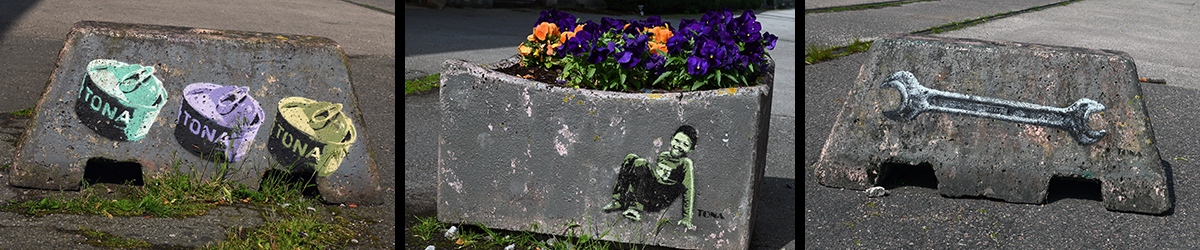 Inte minst de underfundiga och talande texterna som överallt kompletterade verken. Texterna är en viktig del i det som presenteras under psedonymen Ruskig Ångest. De finns alltid med. I reportaget Street Art Göteborg från 2019 finns en del som handlar om Ringön. Ett industriområde som förvandlades till ett galleri för sprejkonstnärer och där Pärra skapade en hel del som verkligen imponerade på mig och gjorde mig nyfiken.