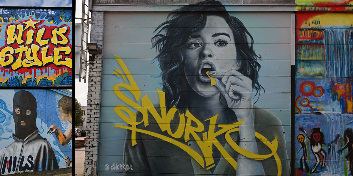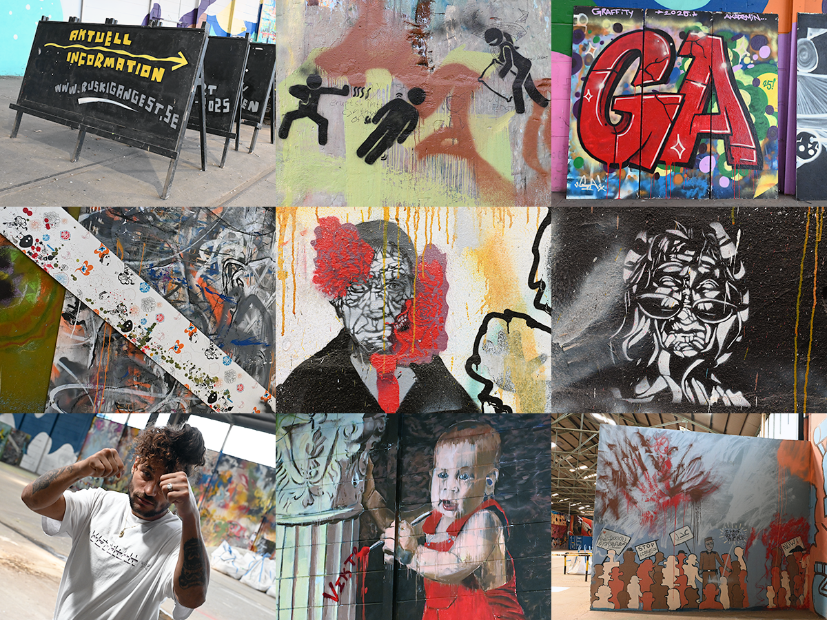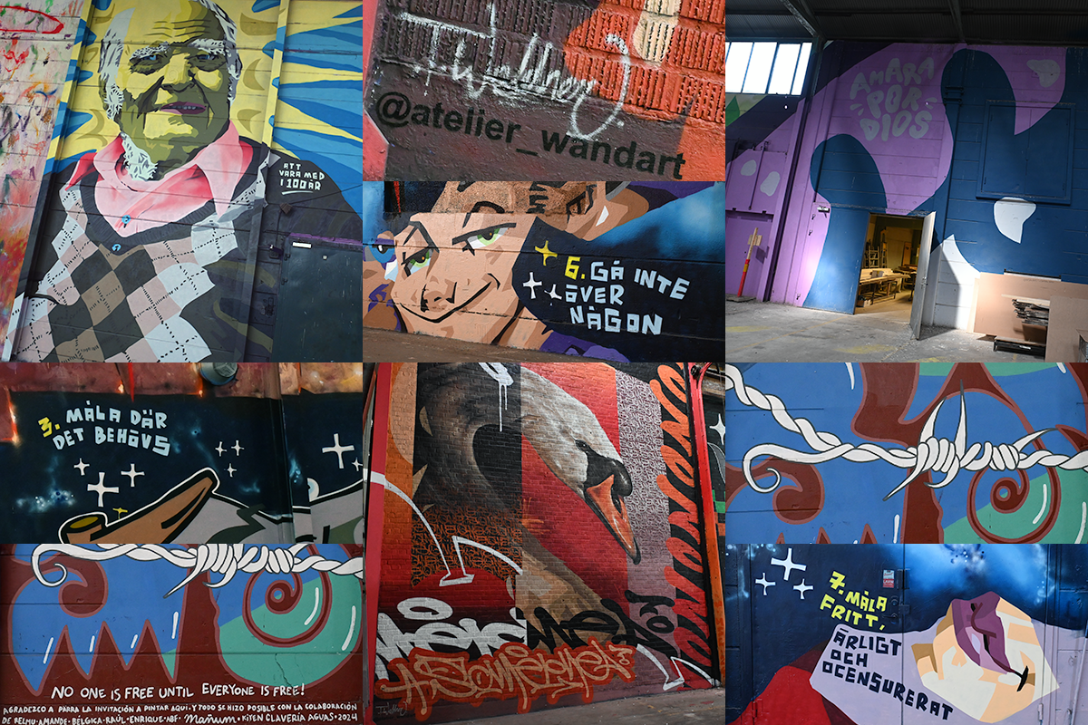 Hade sedan en tid varit fascinerad av denna målare och hans skapelser när jag 2021 i Göteborg äntligen fick träffa honom. Hade hört talas om projektet Hangaren i Malmö, men inte lyckats ta mig dit. Vi fick en go pratstund, bytte telefonnummer och vid nästa besök till Malmö skulle han ge mig en guidad rundvandring. Tiden gick och tillfället dök aldrig upp, förrän nu. Tyvärr var han inte på plats när jag äntligen tog mig tid och letade upp Hangaren, som ligger i ett industriområde i stadsdelen Sofielund mellan Rosengård och Möllan. Redan utanför på stäppen imponerades jag av de väldiga väggarna, storleken och allt det som målats.