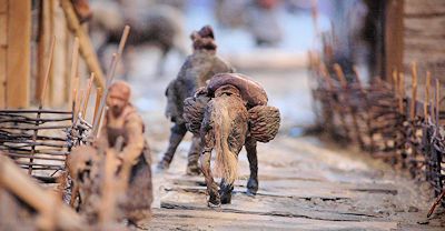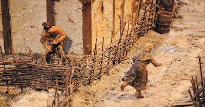 Detaljer från den rikt detaljerade modellen av livet på Birka under Vikingatiden ca 700-1100 från Birka Muséum. Foto Tommy Sörstrand.