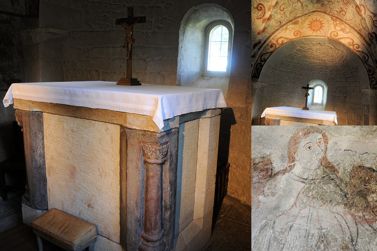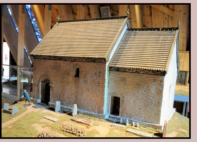 Bilden till höger är från Katas Gård i Varnhem och är en rekonstruktion av ett mycket tidigt kyrkobygge utfört på 1000-talet under Vikingatiden. En tornlös kyrka utan absid, men med de två romanska elementen långhus och kor.