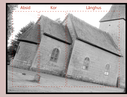 Skissen ovan av den Romerska basilikan är kanske lättare att överföra till våra katedraler, våra biskopssäten, men grunden i det vi kallar Romansk arkitektur är detsamma, även om sockenkyrkorna var mindre och enklare.