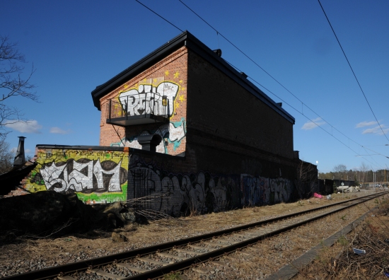 Området kring den gamla järnvägen mellan Karlberg och Värtan vid Albano har länge varit en frizon för diverse verksamheter utan tillträde för den vanlige Stockholmaren. De industribyggnader som fanns på området är nu rivna för att ge plats åt en exploatering där Akademiska Hus i samarbete med Svenska Bostäder ska utvidga AlbaNova, som är en del av Stockholms Universitet och KTH (bilden nedan). Ett litet fragment av tidigare byggnation får än så länge stå kvar. Huset är illa tilltygat. På denna sparade byggnad i ett hav av oordning och förstörelse finns muralmålningen/graffitin Midsummer Madness målad av Akay och Spade 1994.