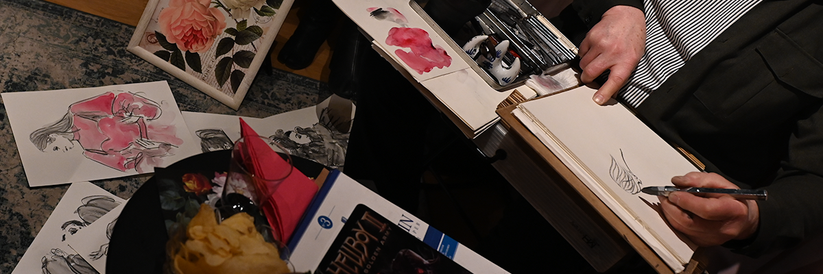 Tillsammans med Asli Su och hennes kreativa idéer med att skapa nya rum och sammanhang för uttrycksformen föddes tankar kring ett samarbete. För Asli var kombinationen med att skissa människor i en viss kontext inte helt ny. Tidigare i år deltog hon och tecknade på Rendez-Vous Club på Kollektivet Livet. Innan dess anordnade hon en Burlesque Croqui, så fantasin för att hitta nya spännande miljöer som engagerar är det inget fel på, i likhet med resultatet som du kan ta del av på hennes hemsida, aslisu.art.
