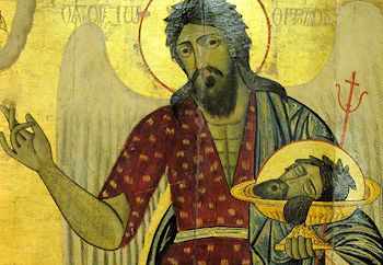 Bildelementen på Dopfunten har detaljer som dels antyder en djupare innebörd, dels anknyter till hur dop faktiskt utfördes på 1100-talet. Om vi börjar med Johannes Döparen (till vänster) så vänder han sitt ansikte rakt mot oss som om han ville säga något. Han döper inte Jesus utan pekar på honom md båda händerna.