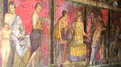 Pompeji, Italien. Fr.v. Golvmosaik - Väggmålning.