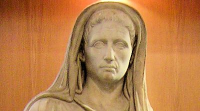 Från Muséet i Paestum, Italien. Fr.v. Dykarens Grav, utsmyckning på sarkofaglock - Romersk marmorstaty. Foto Tommy Sörstrand.
