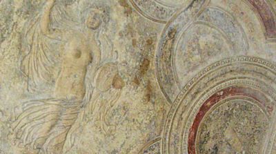 Från Muséet i Paestum, Italien. Fr.v. Fasadutsmyckning - Målning, gravkammare. Foto Tommy Sörstrand.