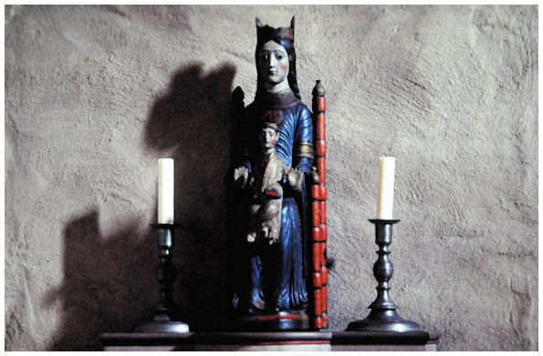 Den medeltida träskulpturen Himladrottningen i Heda kyrka 1997 |