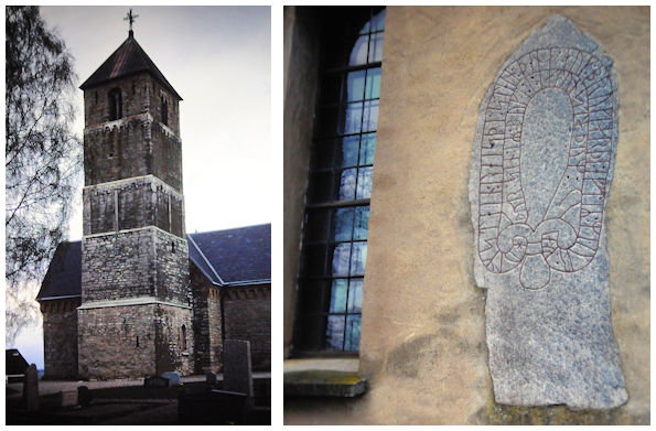 Heda kyrka med inmurad runsten i fasaden 1997 |