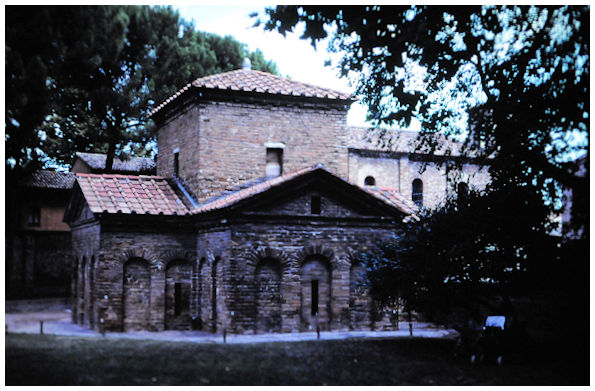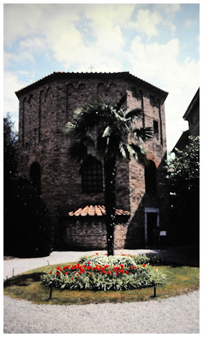 Biskop Neons babtisteri från slutet av 300-talet med den förnämliga takmosaiken, Ravenna 1997 |