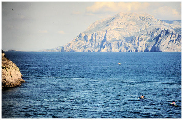 Sandstranden strax norr om Algeciras med Gibraltarklippan i bakgrunden 1996 |