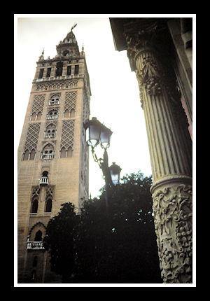 Det är bilden av Sevilla jag ser framför mig när Disneys Tjuren Ferdinand i TV på Julafton fraktas till tjurfäktningsarenan i Madrid. Figaros bröllop och Carmen utspelas här och har också hjälpt till att sprida den Spanska schablonen. Sevilla har historiskt varit en viktig stad och benämns av Romarna som Hispalis och en del i det Romerska imperiet. Efter Romarna kom Vandalerna, därefter Visigoterna och på 700-talet blev Araberna stadens herrar. Sevilla blev en del av Emiratet Cordoba och en av huvudorterna på den Iberiska halvön. Vid 1000-talets början hade Emiratet Cordoba krympt på grund av Reconquistan och inre stridigheter, där framförallt två Kalifdynastier stred om makten över Sevilla och Andalusien. Almohaderna, en dynasti grundad i slutet av 1000-talet av Berbern Muhammed ibn Tumart i Marrakech gick slutligen ut som vinnare 1149 under den nytillträdde Kalifen al-Mumin, som då utropades till Emir över Almohadernas rike. 1170 flyttades huvudstaden från Marakech till Sevilla. Det är under den här tiden, närmare bestämt 1184, som moskén byggs med den höga minareten Giralda. För att förenkla för böneutroparen byggdes tornet utan trappor. Istället byggdes trettiofem ramper stora nog för att göra det möjligt att ta sig upp till häst.