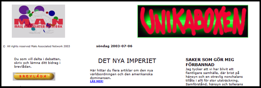 Det har hänt en del genom åren. Hårddiskar har kraschat och originalfiler försvunnit. När sajten renoverades 2021 i samband med 20-års jubiléet sparades delar av den gamla strukturen och två sidor skapades för att beskriva hur allting en gång började. Dessa sidor finns fortfarande med i vänsternavigeringen på sajten medan detta jubileumsreportage mer är tänkt som ett collage av bilder för att beskriva utvecklingen och hur Unikaboxen.net blev det digitala magasin som finns idag. Bilden är i centrum och den bildbank som skapats genom åren med eget material är källan som jag öst ur för att hitta minnen och händelser som påverkat och skapat de intressesfärer som idag delar upp sajten i åtta kategorier. Collaget nedan visar hur jag till en början arbetade och manipulerade andras bilder. Mitt eget fotograferande fick betydelse för sajten långt senare. Bilden med den Amerikanska flaggan är den äldsta bildfilen jag hittat och är från februari 2002.