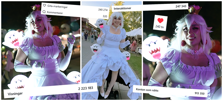 Två år senare på När Con Sommar 2024 hände något som verkligen lyfte Unikaboxens Instagramkonto. En kort liten reel på Nisens cosplay blev helt plötsligt viral och fick miljoner visningar och en massa likes. När det började hända kontaktade hon mig. -Har du sett vad som hänt med din film på Insta? Kort därefter fick min telefon fullständigt fnatt och pep hela tiden. Familjen undrade om det var något fel på den. Ibland händer det bara. Kändes som jag skrapat fram en miljon på Triss. Mina följare och räckvidden för publicerat ökade och det bidrog också till att Nisens konto @nisencosplay fick en boost, för det var ju faktiskt hennes cosplay som hade väckt uppmärksamhet.