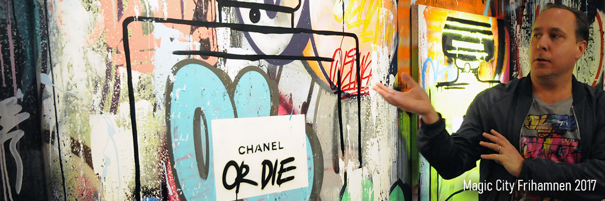 Jag tappade lite av mitt fokus på Snösätra åren 2016 och 2017, men inte på Graffiti och Street Art. Efter mötet med Jimmie Hall i Kungsträdgården under Stockholm Street Festival öppnades helt nya möjligheter. Helt plötsligt fick jag tillgång till de verkligt stora inom genren. Inte bara Svenska artister. På festivalen fick jag träffa Tristan Eaton och kort därefter blev jag inbjuden till en live show med Odeith när han skulle måla en piece i Heron City. När sedan Wallery Gallery öppnade med ett vernissage för Huge i november blev Riddargatan 1 vid Stureplan snabbt som ett andra hem för mig. En plats för otaliga fester, men också bara ett häng för sköna samtal och fantastiska möten. Jimmie var också inblandad i utställningen Magic City - The Art Of The Street som öppnade upp den 28 oktober 2017 ute i Frihamnen. För mig något nytt och helt fantastiskt, men alla invigda i subkulturen var inte lika entusiastiska.
