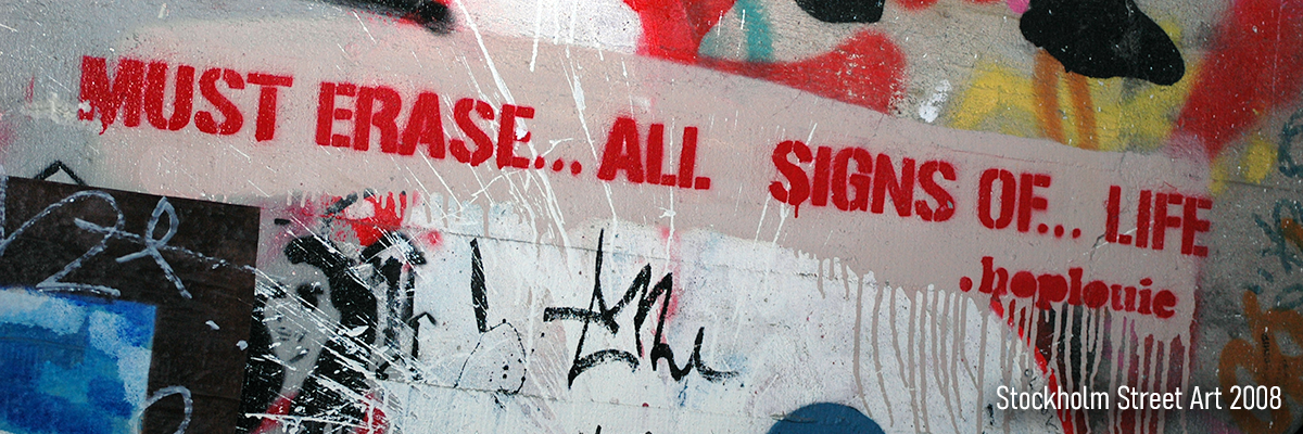 Den vildaste dialogen skapades när Carolina Falkholt målade en jättelik blå penis på Kronobergsgatan 35. Den så kallade Kronobergsväggen. Den blev tyvärr inte så långlivad, men så länge den satt uppe fick jag ta del av många spontana samtal på min väg till och från jobbet på Fleminggatan. Ofta var det älder damer som blev fascinerade och gärna ville dela med sig av sina känslor. De flesta var imponerade och faktiskt ganska förtjusta minns jag. Det är och har sedan 2008 varit Kollektivet Livet som ansvarat för vad som målas på den väggen.